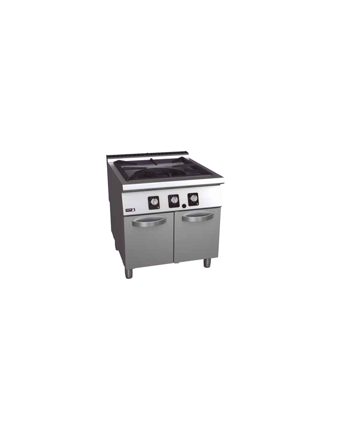 - Quemador de doble corona con cuatro filas de llamas en cada una, lo que garantiza la uniformidad y distribución térmica de la llama en el fondo de la paella.